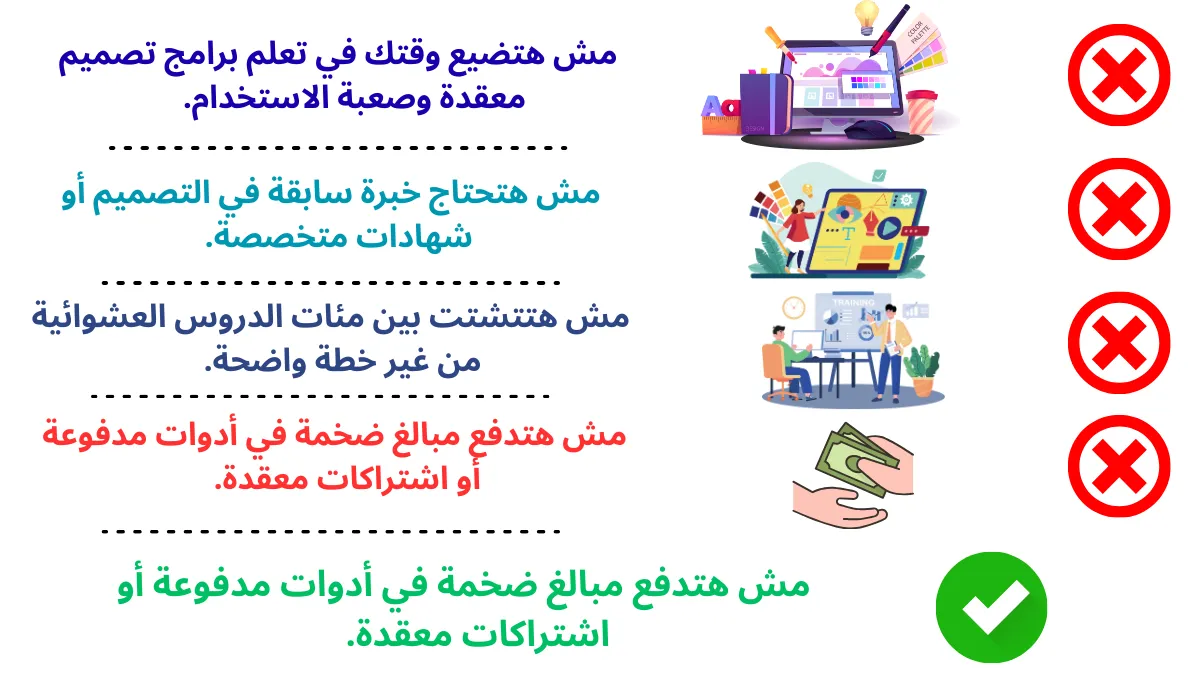 لا إطلاقًا! الكورس مخصص للمبتدئين تمامًا، ولا تحتاج لأي خبرة سابقة في التصميم. كل الشرح مبني خطوة بخطوة بطريقة بسيطة وسلسة باستخدام Canva فقط.